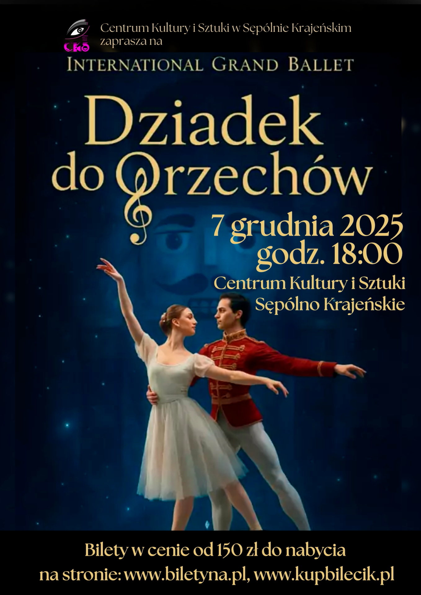 Wczoraj scena sępoleńskiego Centrum Kultury i Sztuki zamieniła się w bajkowy świat, a wszystko za sprawą niezwykłego spektaklu „Dziadka do Orzechów” w wykonaniu International Grand Ballet. Publiczność dała się porwać w magiczną podróż wigilijnej nocy – od wzruszających momentów, przez pełne energii tańce narodowe, aż po zachwycający „Walc kwiatów”. Każda scena była dopracowana w najmniejszym […]