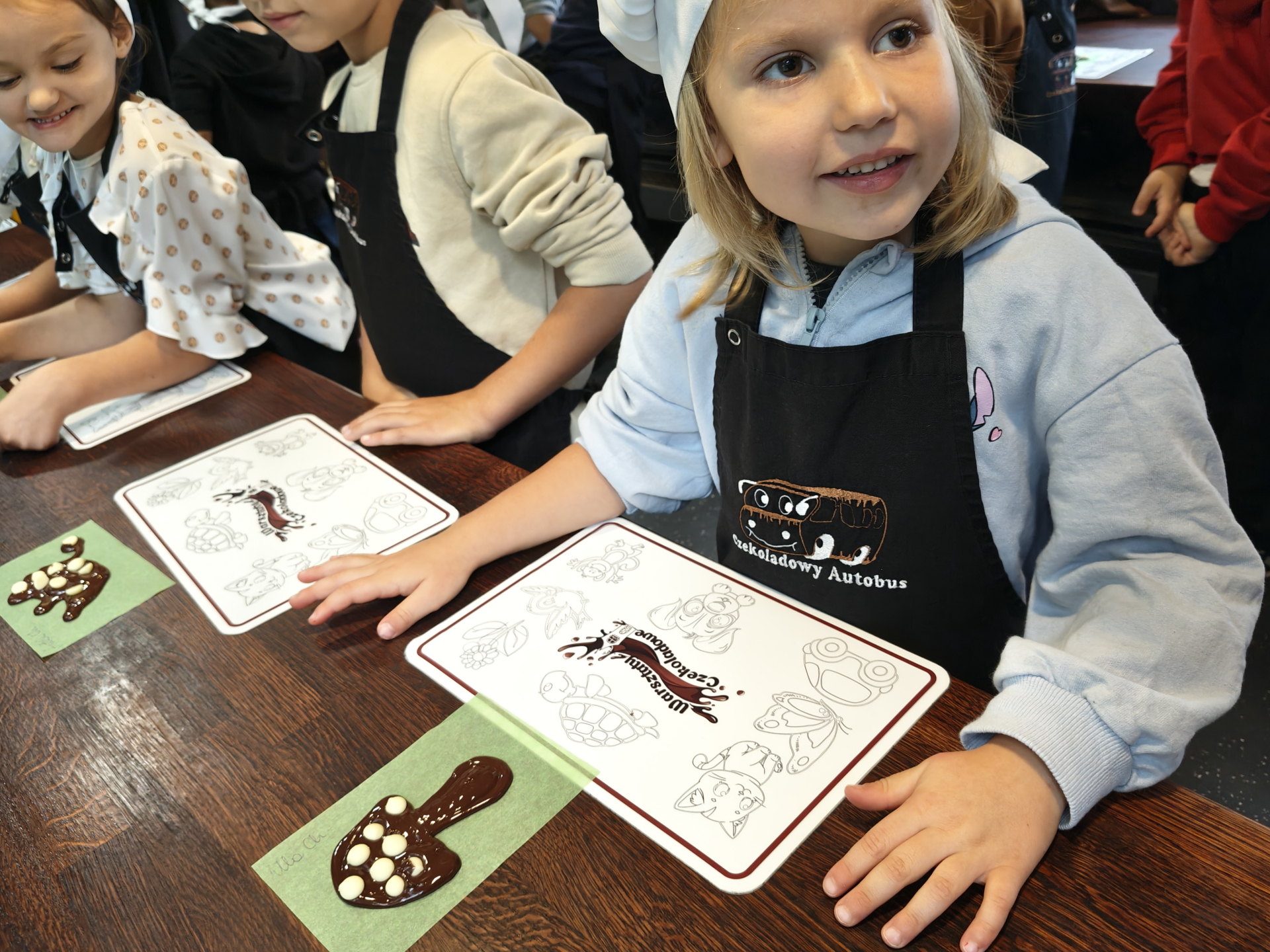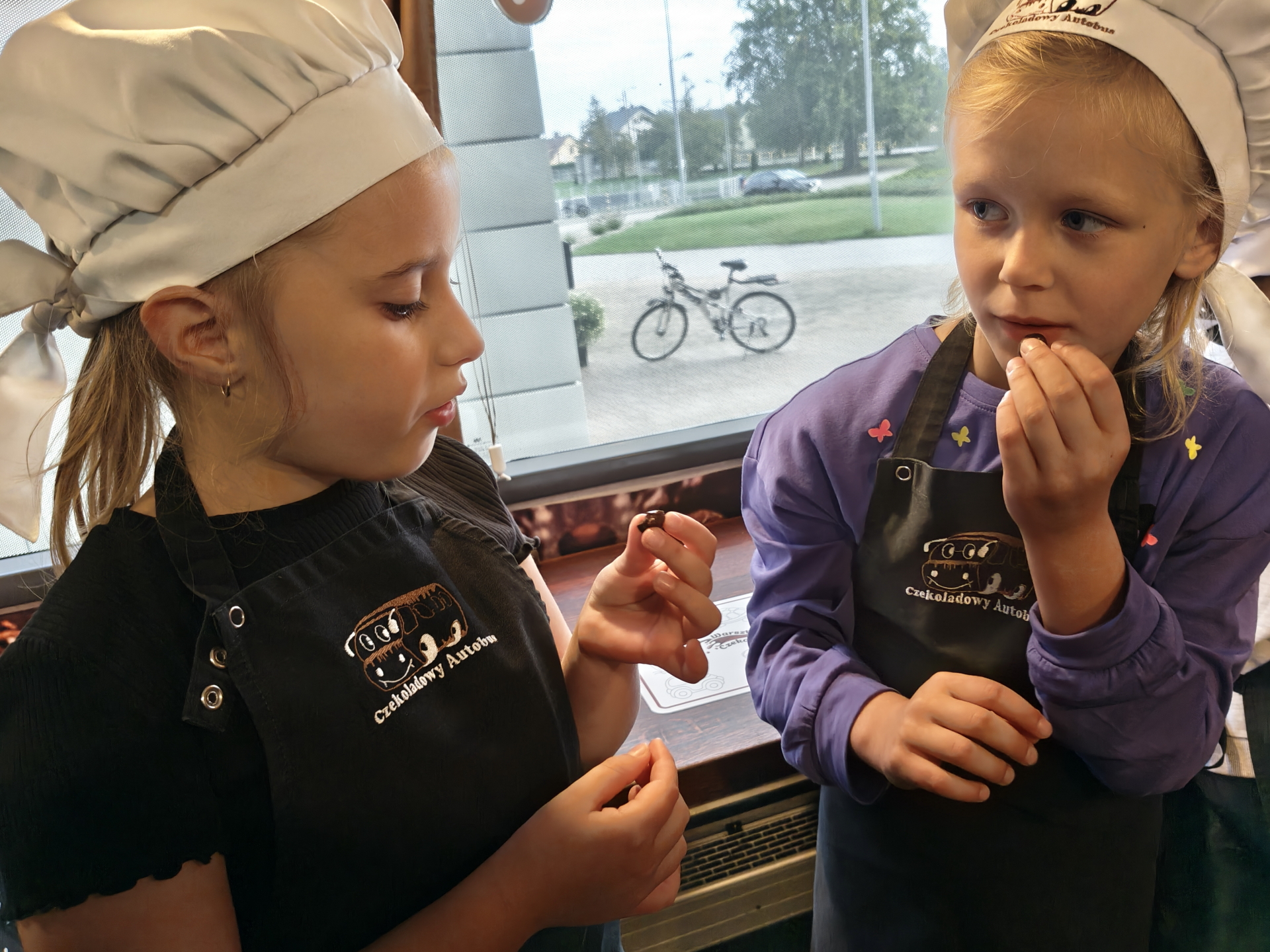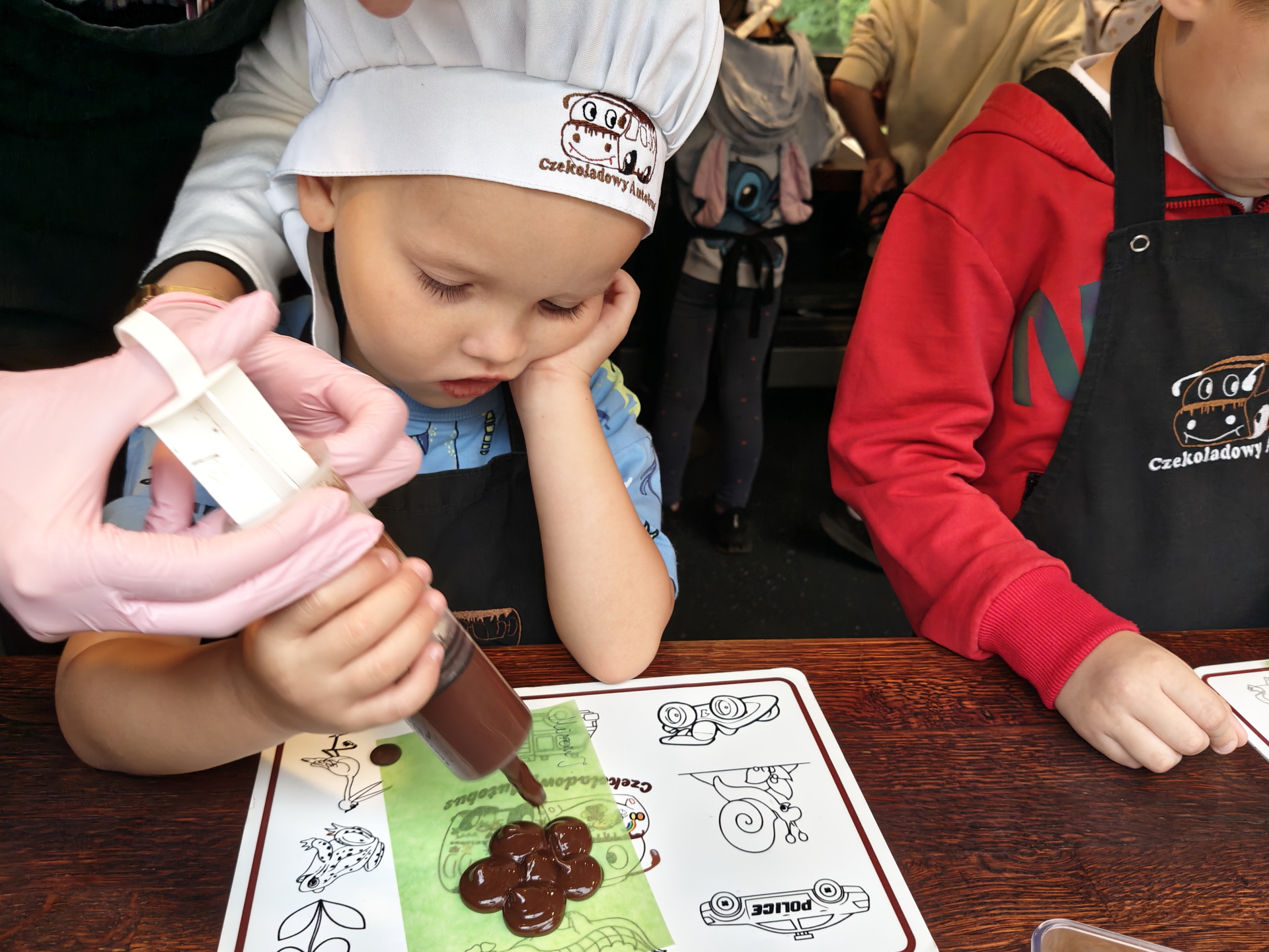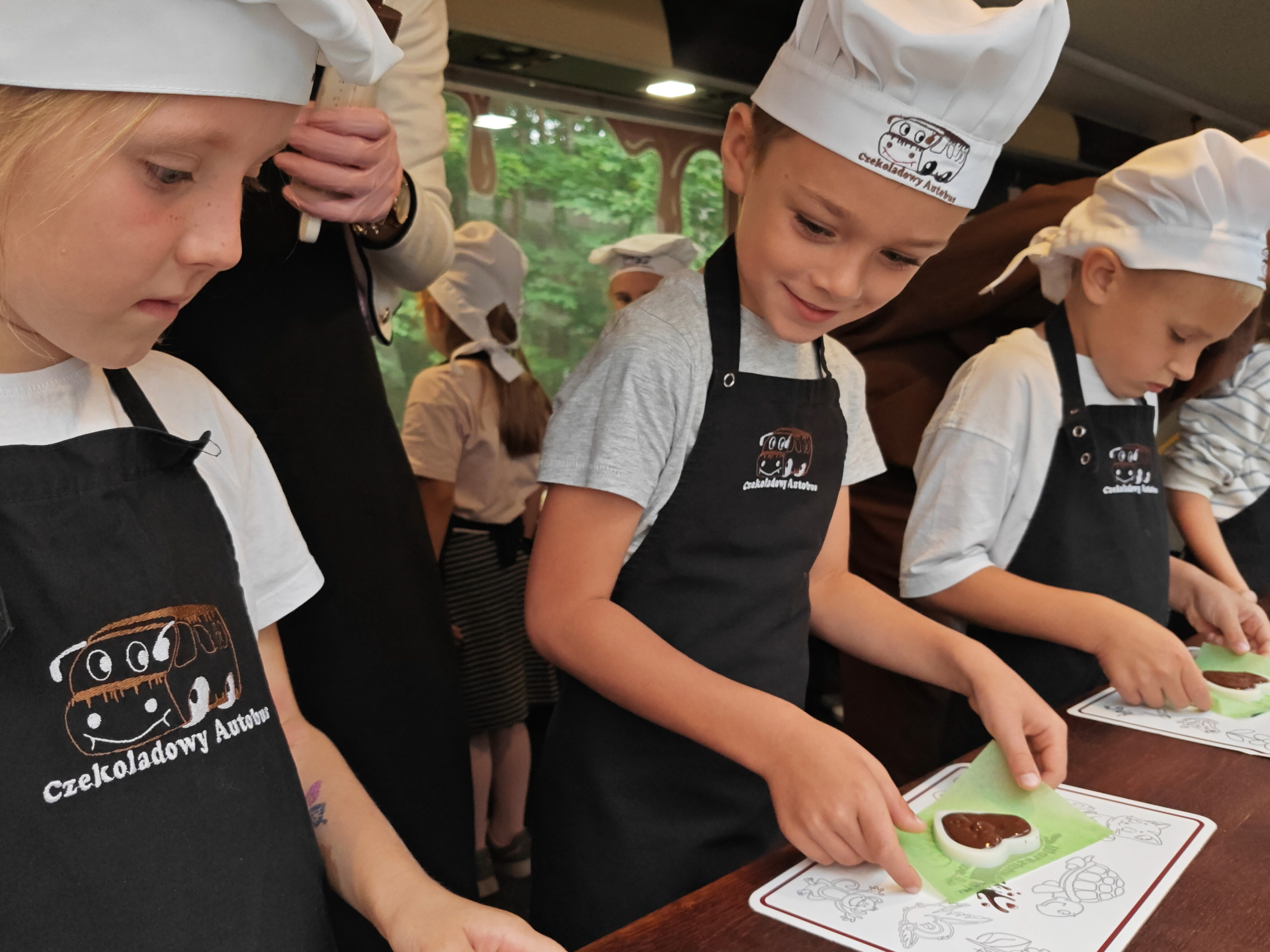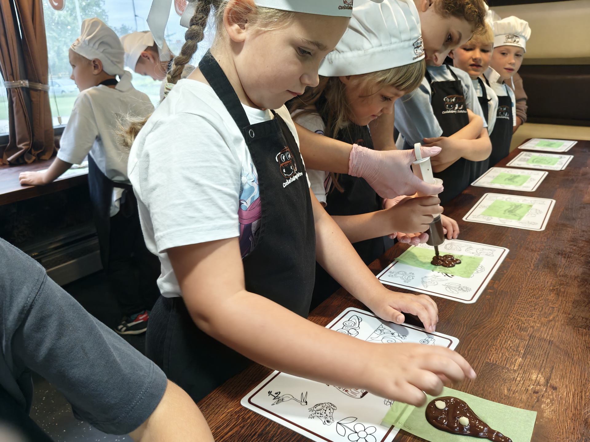 Podczas zajęć dzieci miały okazję odkryć tajemnice produkcji czekolady, spróbować jej w różnych odsłonach oraz samodzielnie przygotować słodkie wyroby. Była to nie tylko nauka, ale przede wszystkim wspaniała zabawa, która dostarczyła mnóstwo radości i uśmiechu.