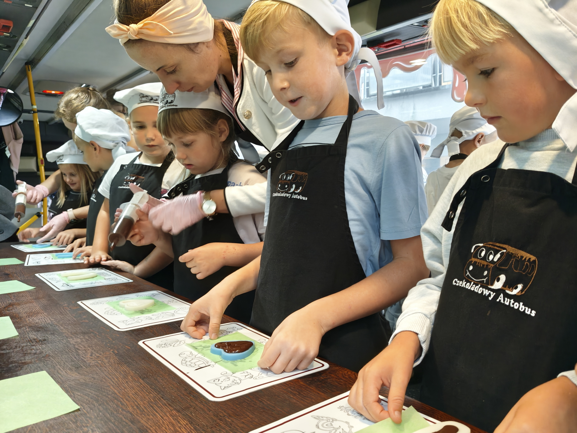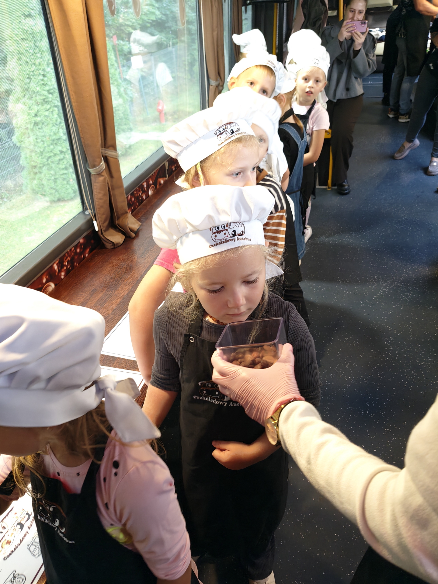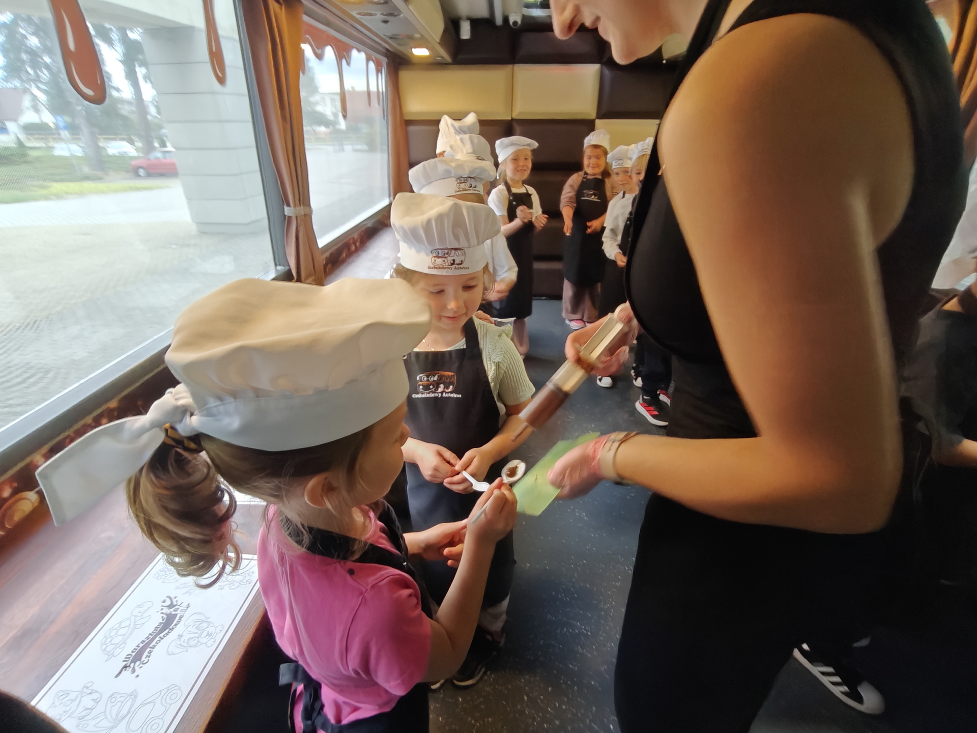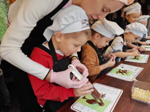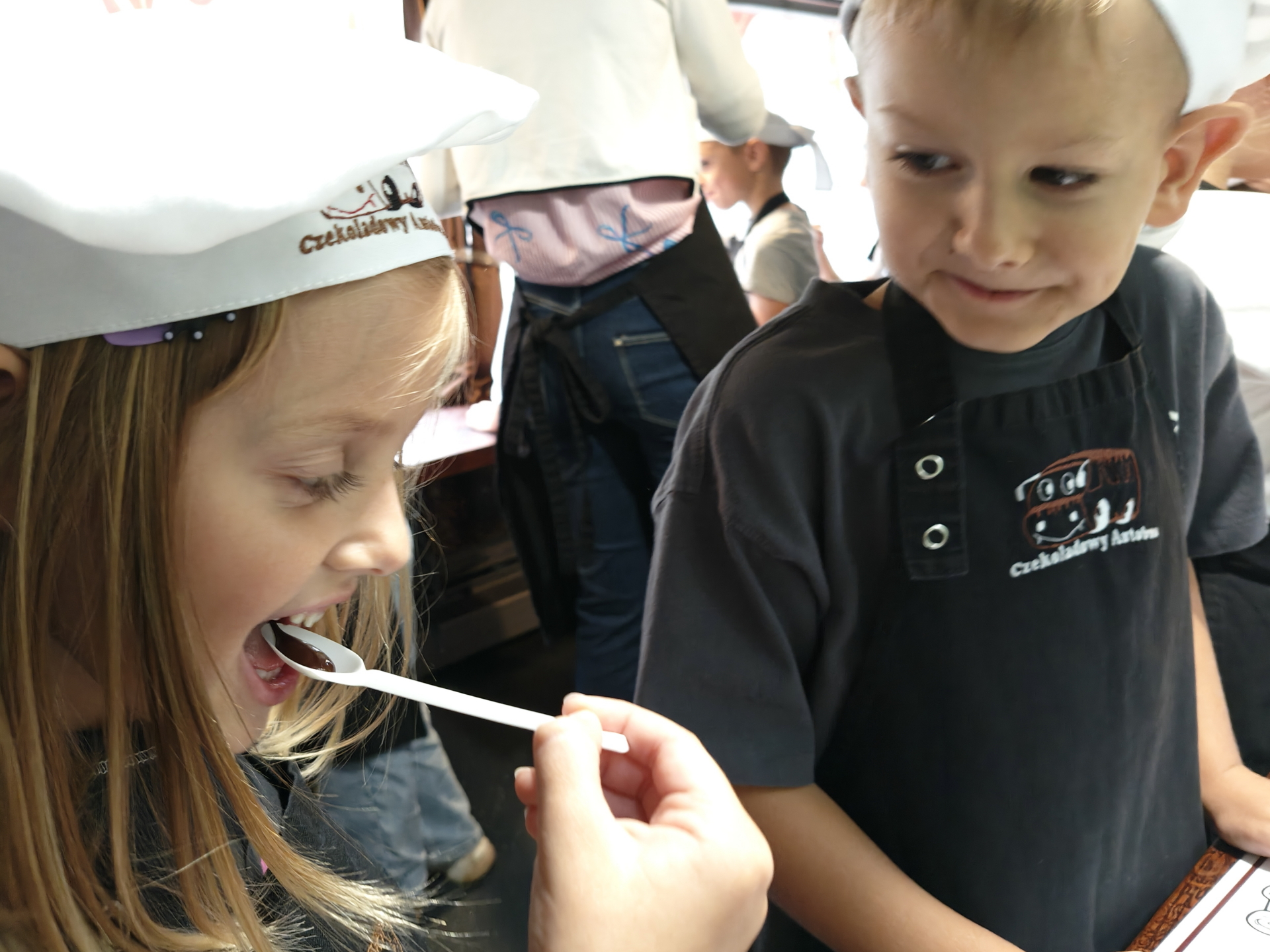 Podczas zajęć dzieci miały okazję odkryć tajemnice produkcji czekolady, spróbować jej w różnych odsłonach oraz samodzielnie przygotować słodkie wyroby. Była to nie tylko nauka, ale przede wszystkim wspaniała zabawa, która dostarczyła mnóstwo radości i uśmiechu.