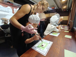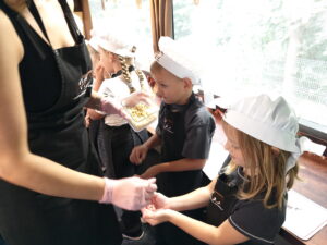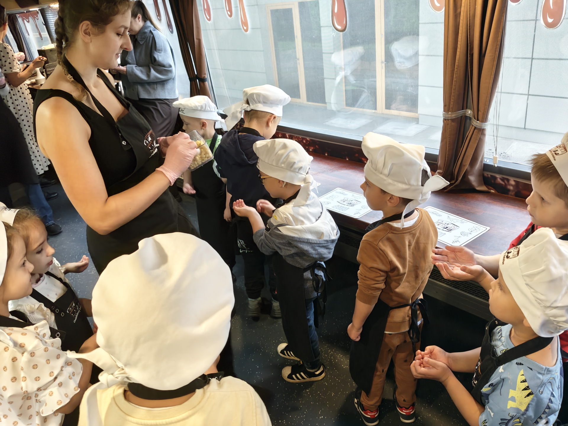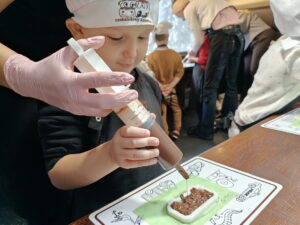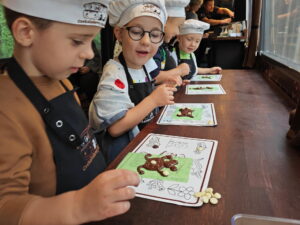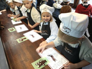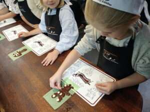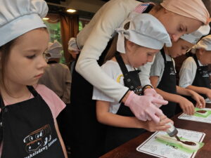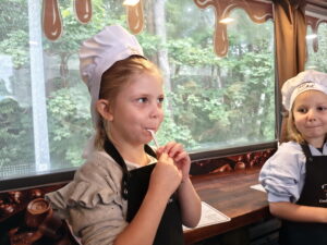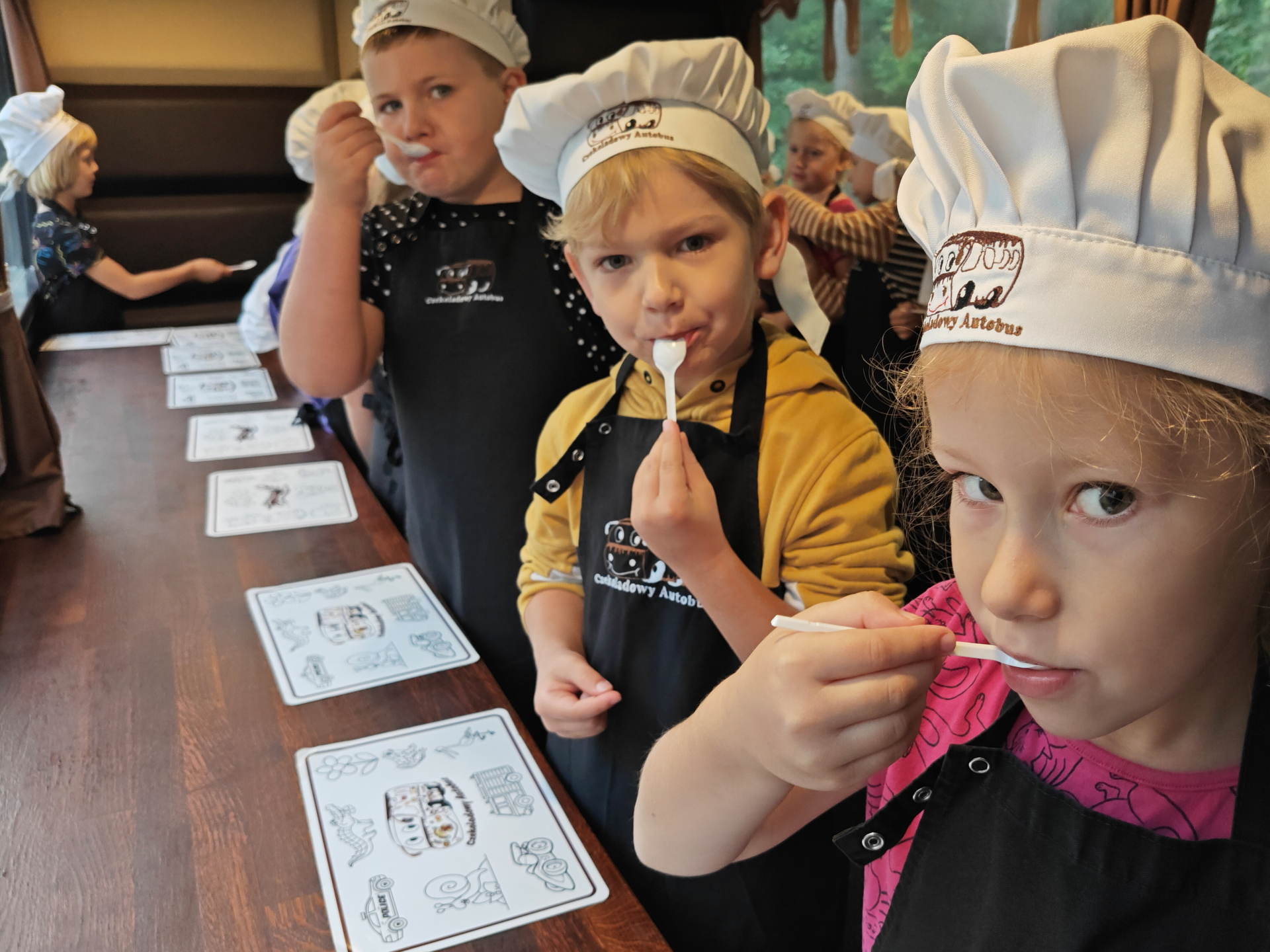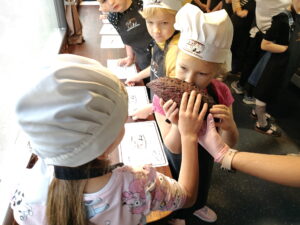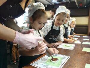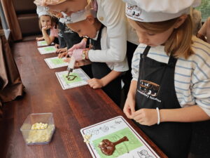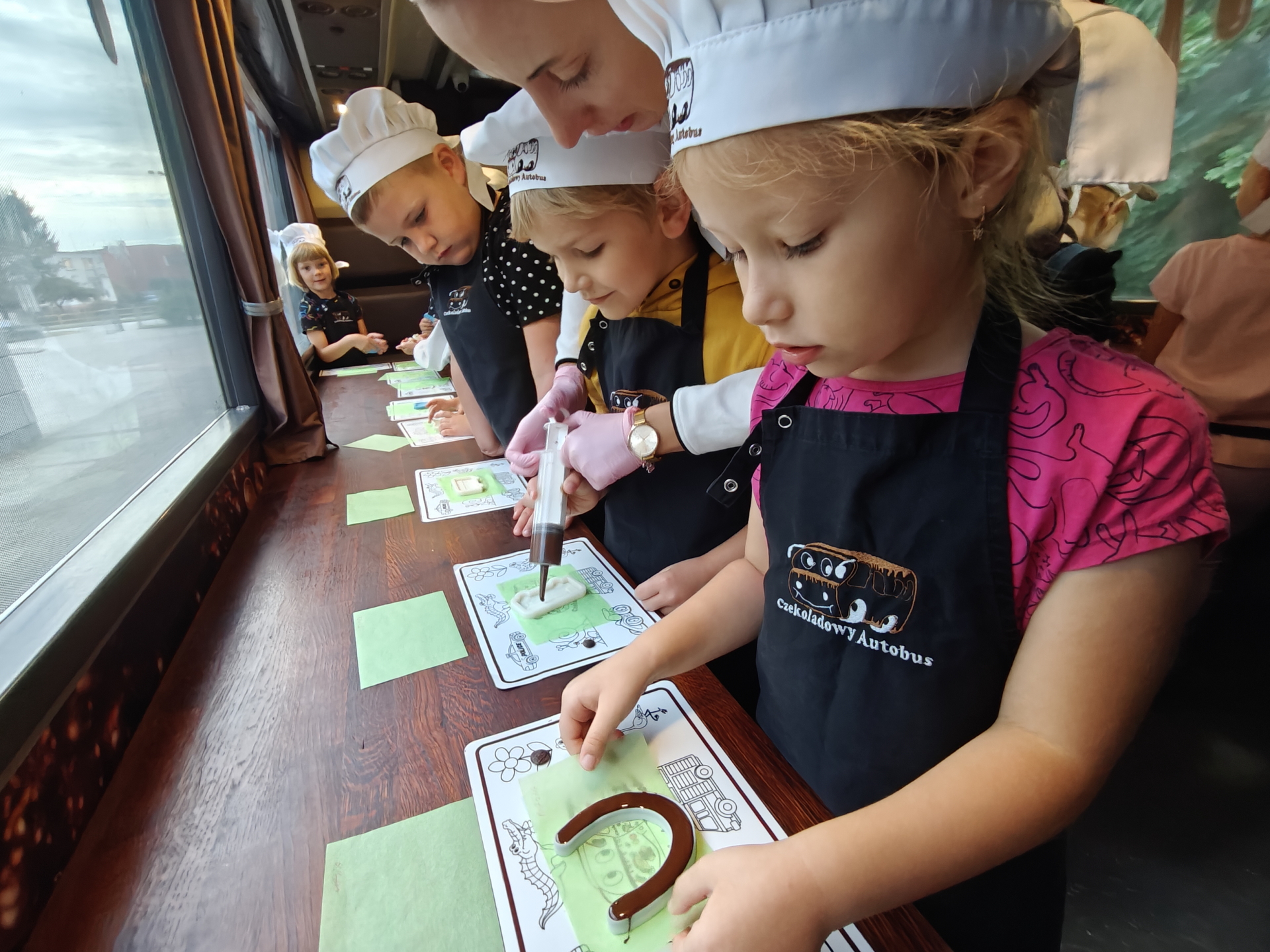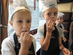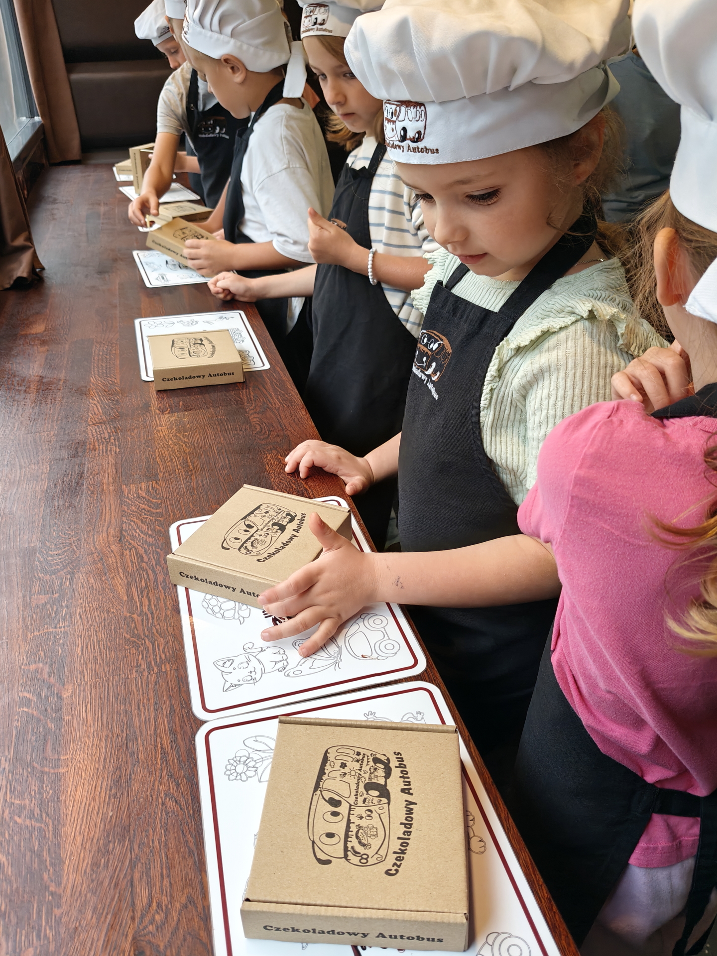 Podczas zajęć dzieci miały okazję odkryć tajemnice produkcji czekolady, spróbować jej w różnych odsłonach oraz samodzielnie przygotować słodkie wyroby. Była to nie tylko nauka, ale przede wszystkim wspaniała zabawa, która dostarczyła mnóstwo radości i uśmiechu.