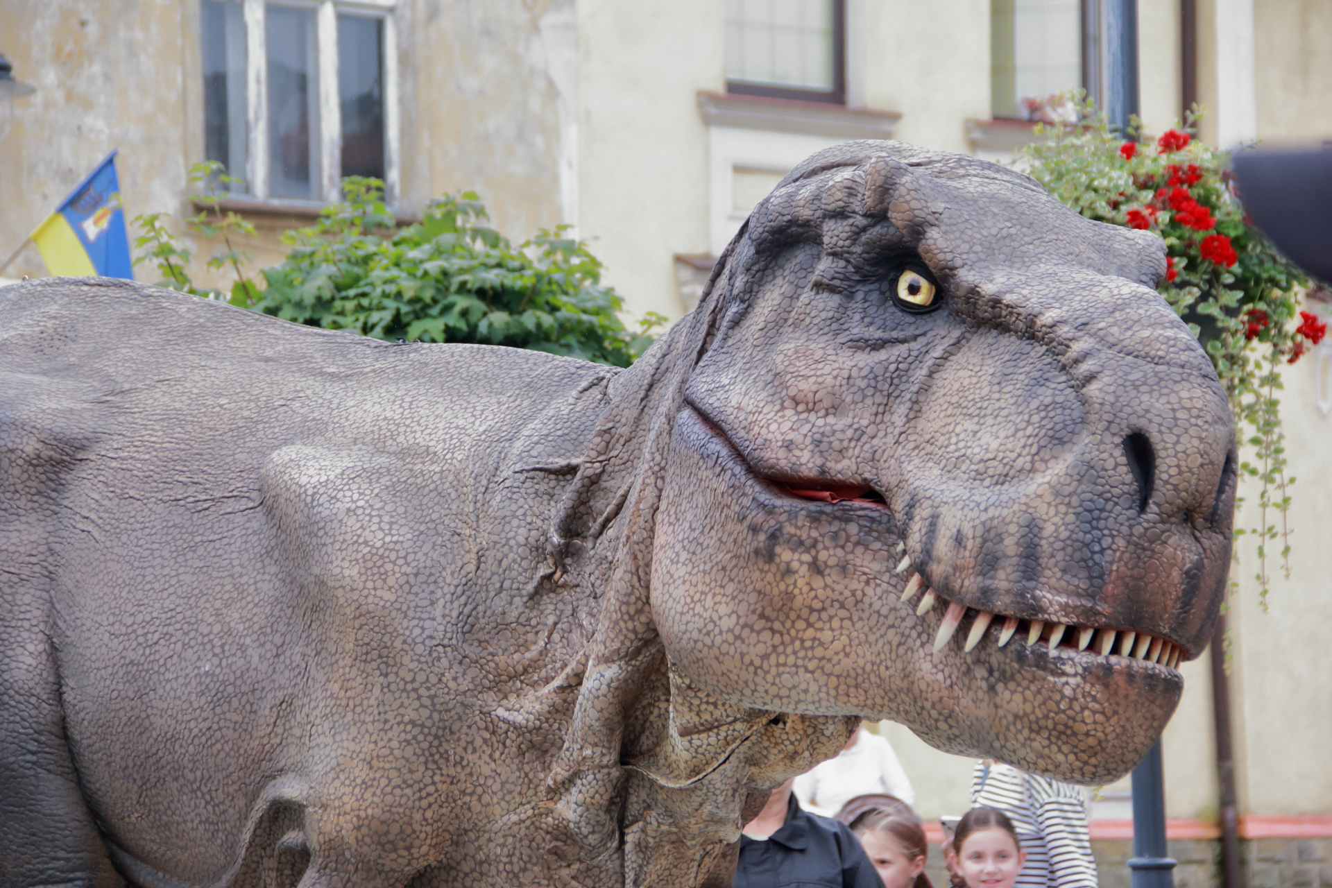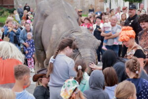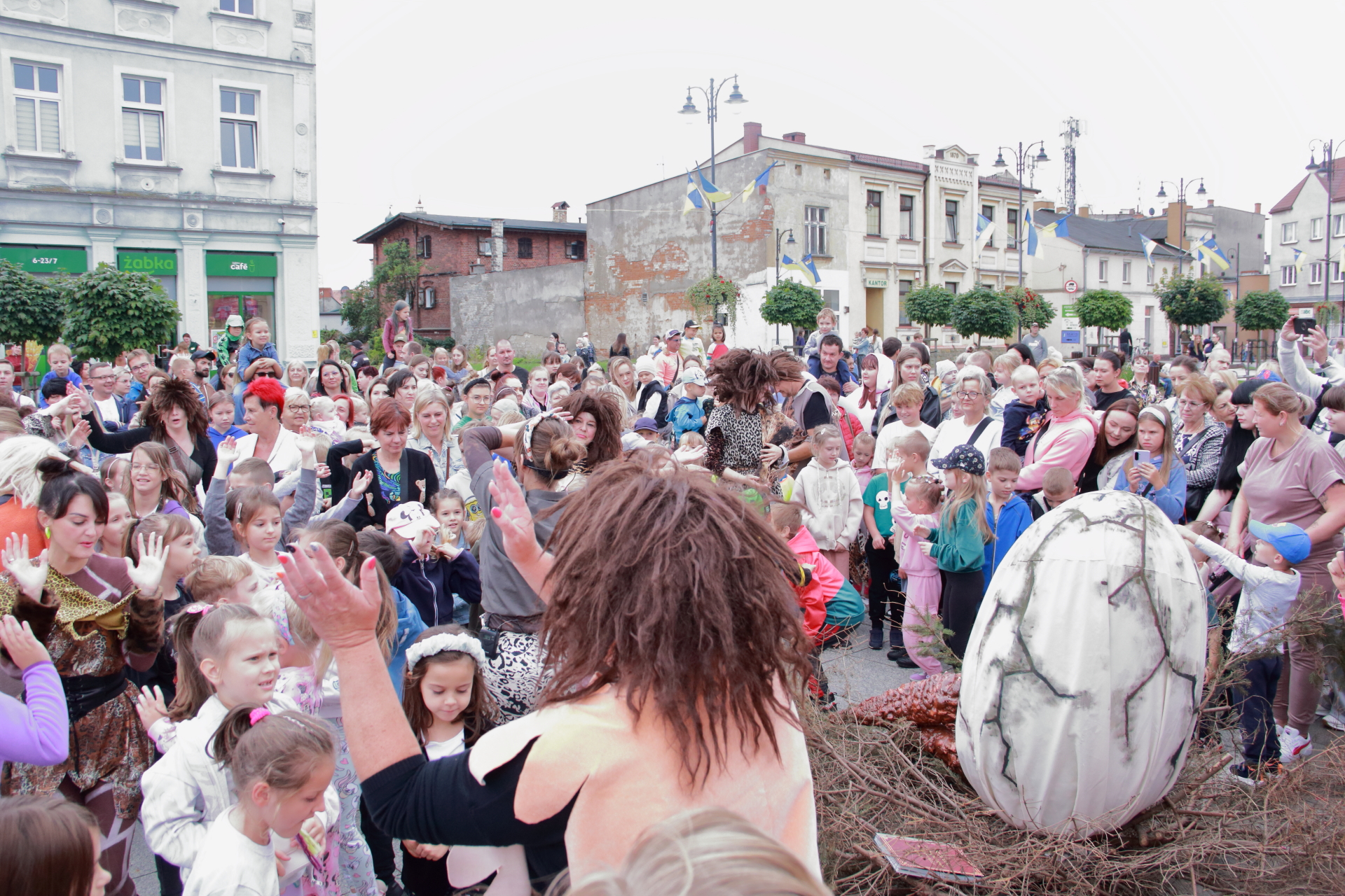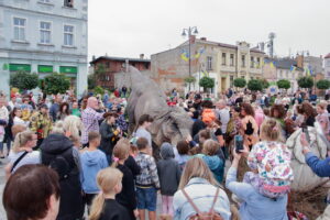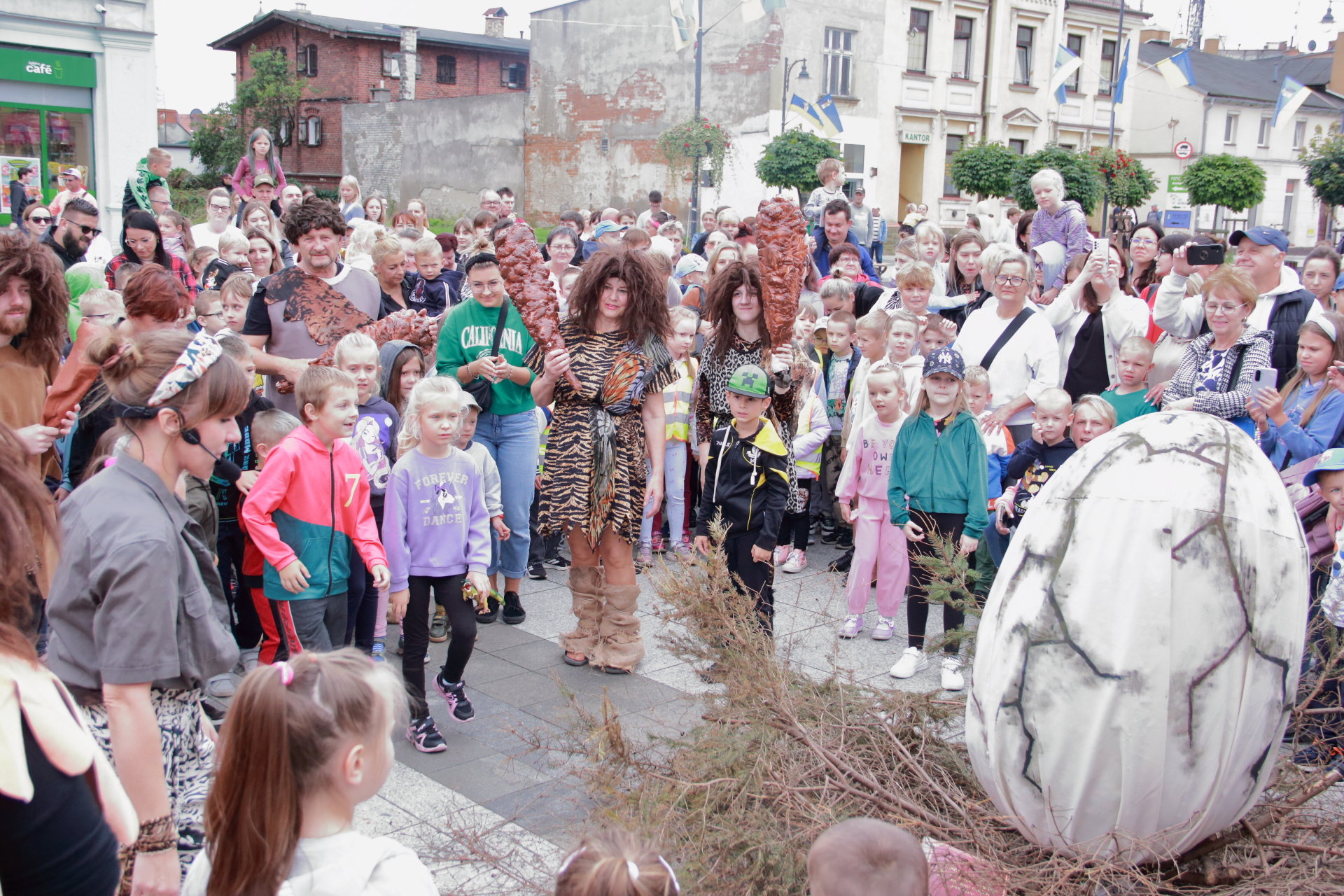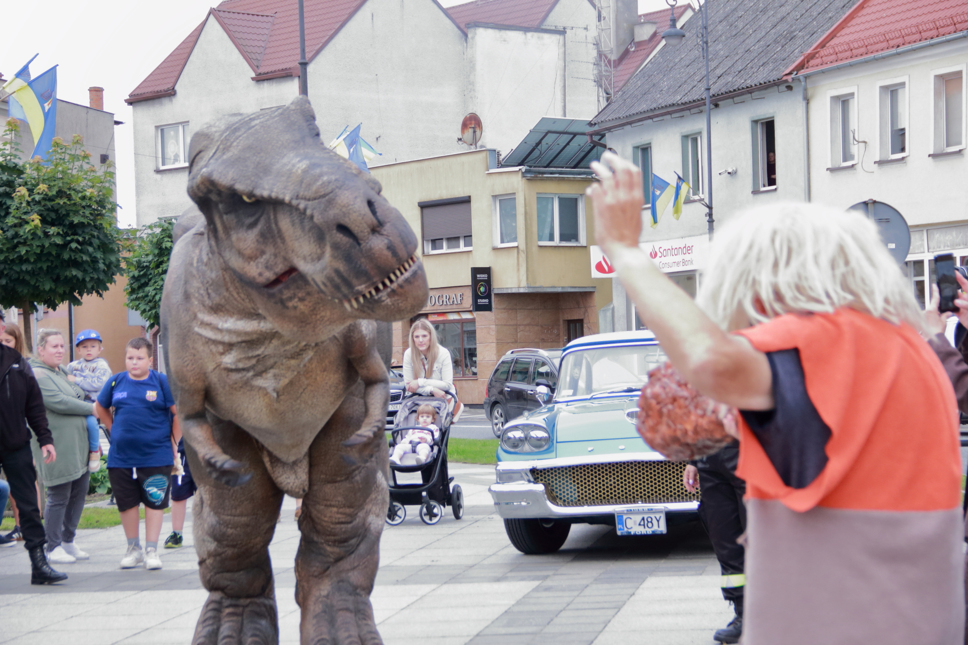 T-Rex, choć wyglądał groźnie, okazał się wyjątkowo towarzyski i skory do zabawy. Dzieci z radością uczestniczyły w jego „wybudzaniu”, a następnie w licznych animacjach i harcach. Wydarzenie przyciągnęło tłumy – nie zabrakło zachwyconych rodzin, aparatów fotograficznych i szerokich uśmiechów.