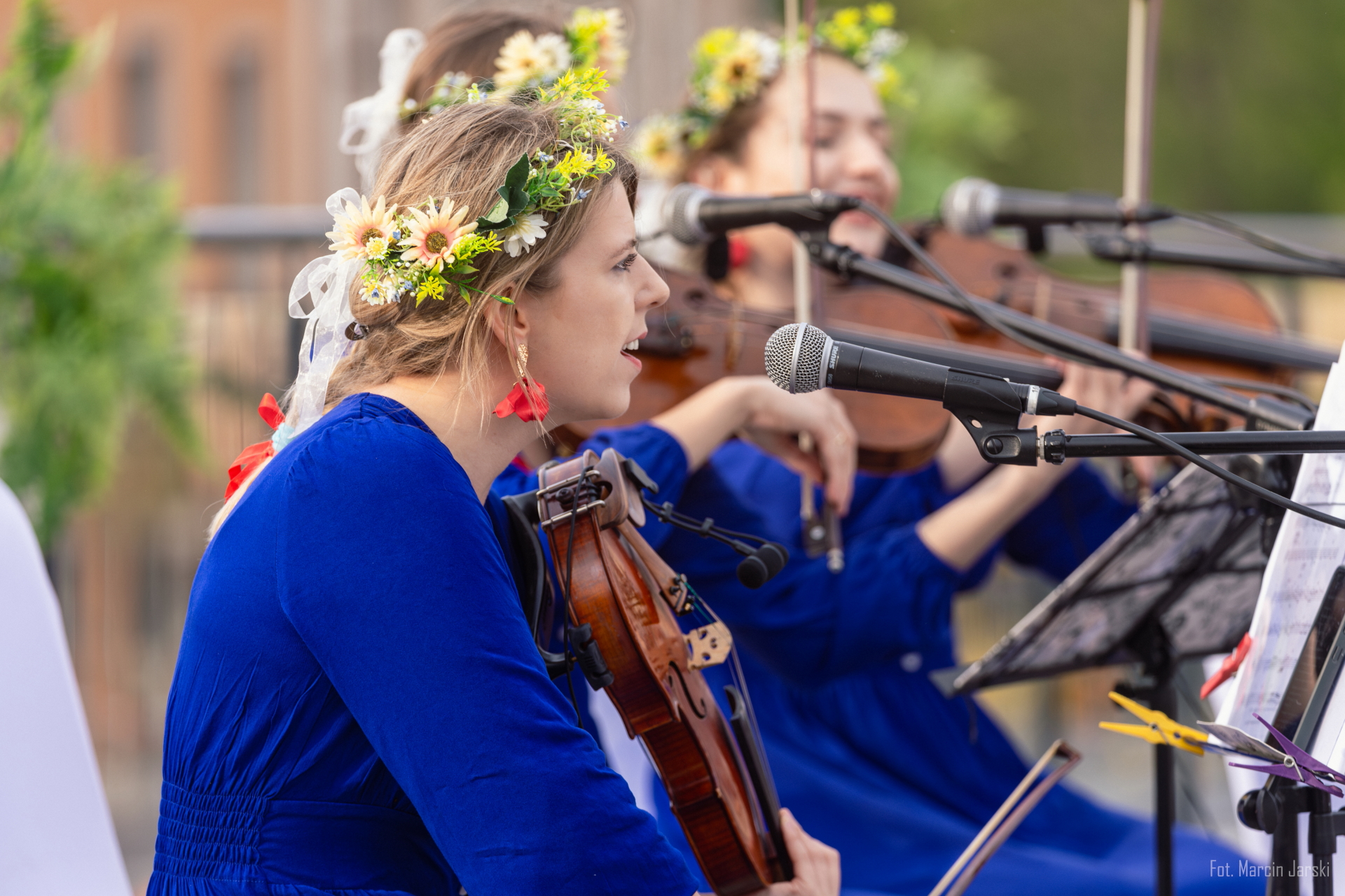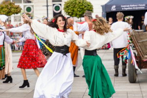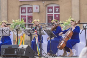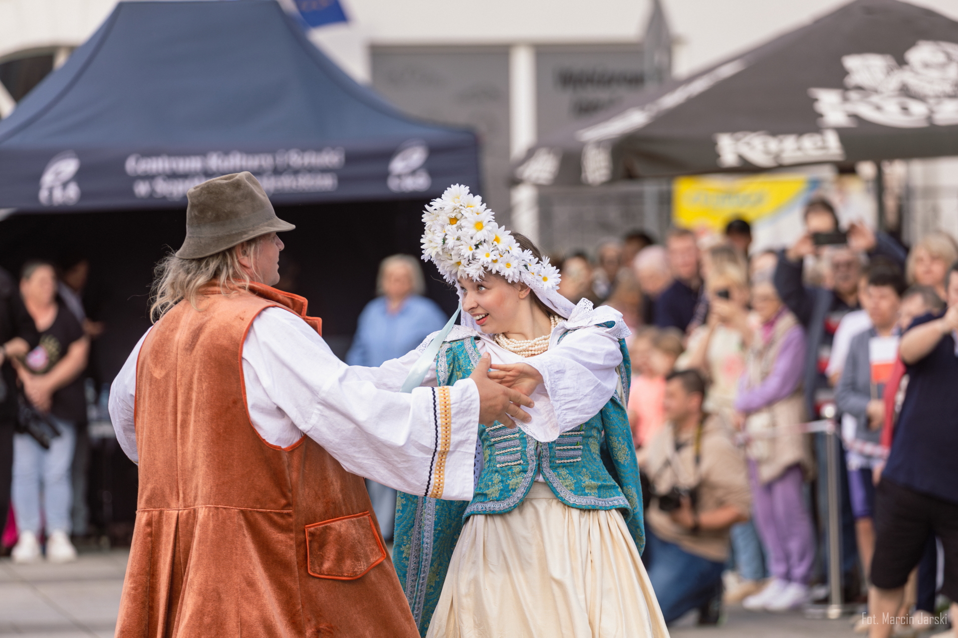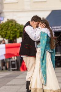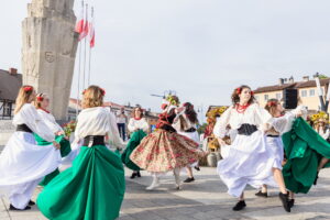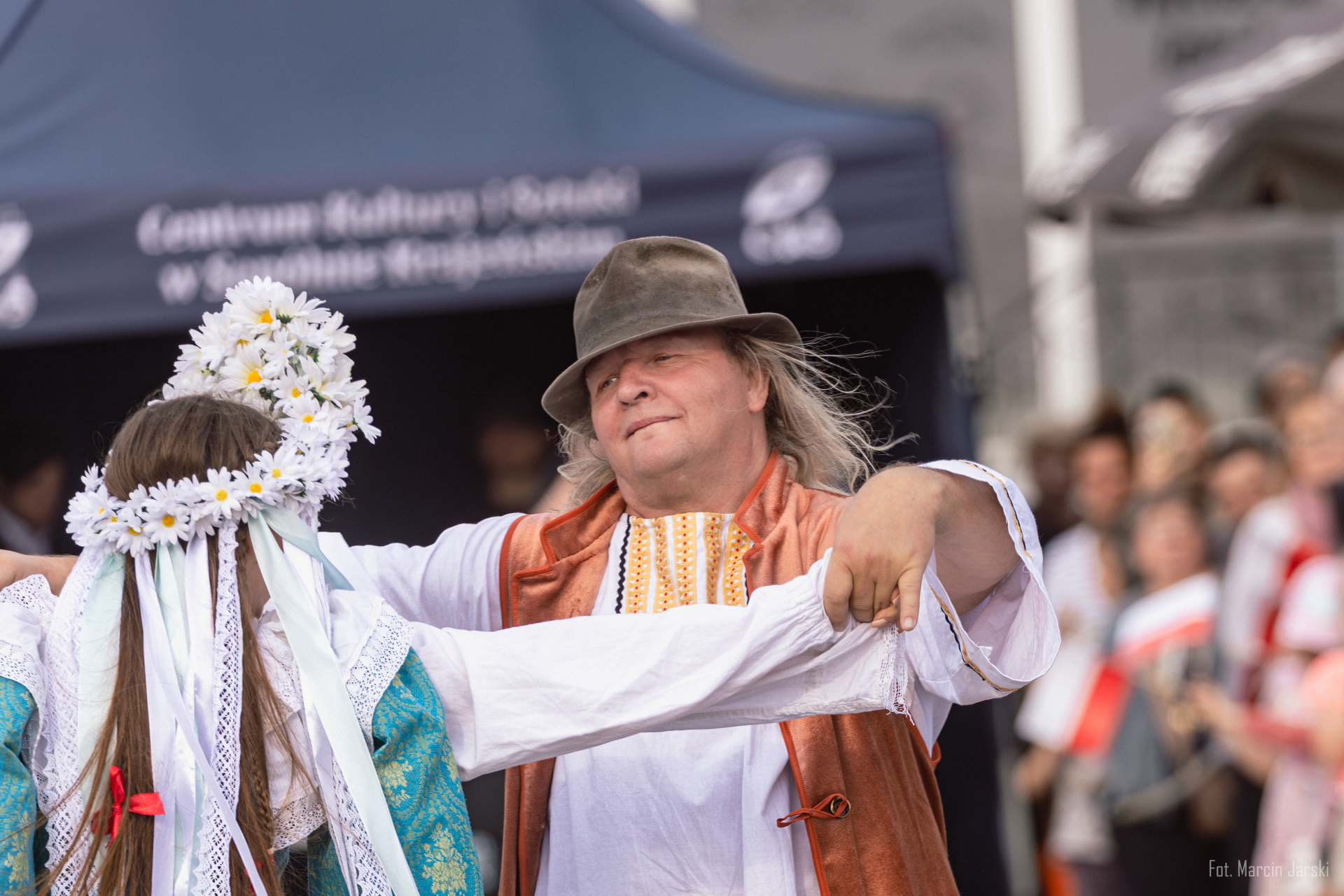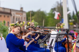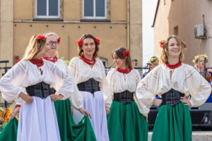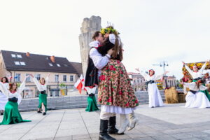 Wydarzenie inspirowane fragmentami powieści naszego noblisty powstało z miłości i pasji do tańca. Wiejskie wesele to huczne wesele, wesele na którym nikt nie oszczędza nóg i gardeł. Toteż widowiskowe piruety, podskoki i inne akrobatyczne figury roztańczonych par stanowiły centralny punkt tej z rozmachem przygotowanej imprezy. Za patrona tegorocznego Święta Flagi Rzeczypospolitej nie bez powodu przyjęliśmy Władysława Reymonta i bohaterów jego najsłynniejszej powieści. „Chłopi” to tekst, w którym istotne są wątki dotyczące dziedzictwa kulturowego oraz kultury lokalnej, stanowiącej fundament kultury w ogóle. Ponadto rok 2025 został ustanowiony rokiem Władysława Stanisława Reymonta, co dodatkowo zainspirowało nas do symbolicznej wycieczki do Lipiec. W wydarzeniu udział wzięły dziewczęta niegdyś doskonalące swoje taneczne talenty w CKiS. Ich zaangażowanie i wysiłek włożony w to by widowisko stało na jak najwyższym poziomie, zaowocował nostalgicznym, emocjonalnym spektaklem o miłości i walce serca z rozumem. Za oprawę muzyczną Borynowego wesela odpowiadał bydgoski Kwartet Kujawy. Przepiękne, folklorystyczne melodie pomogły nam wczuć się w klimat XIX wiecznych zaślubin. W takim anturażu przez niespełna godzinę mogliśmy obserwować pełne zwrotów akcji i silnych emocji widowisko, które spuentowała kolektywnie odtańczona polka.