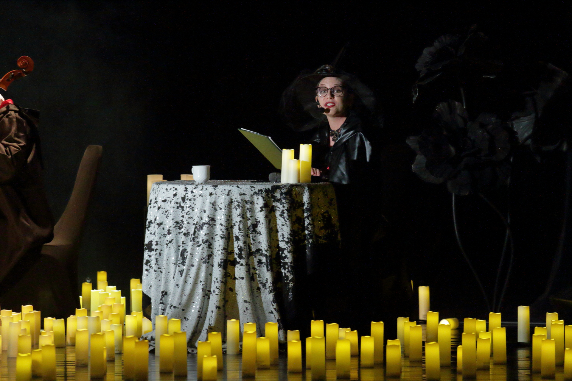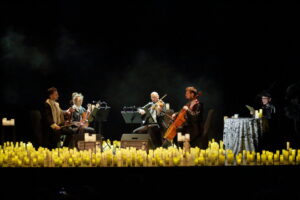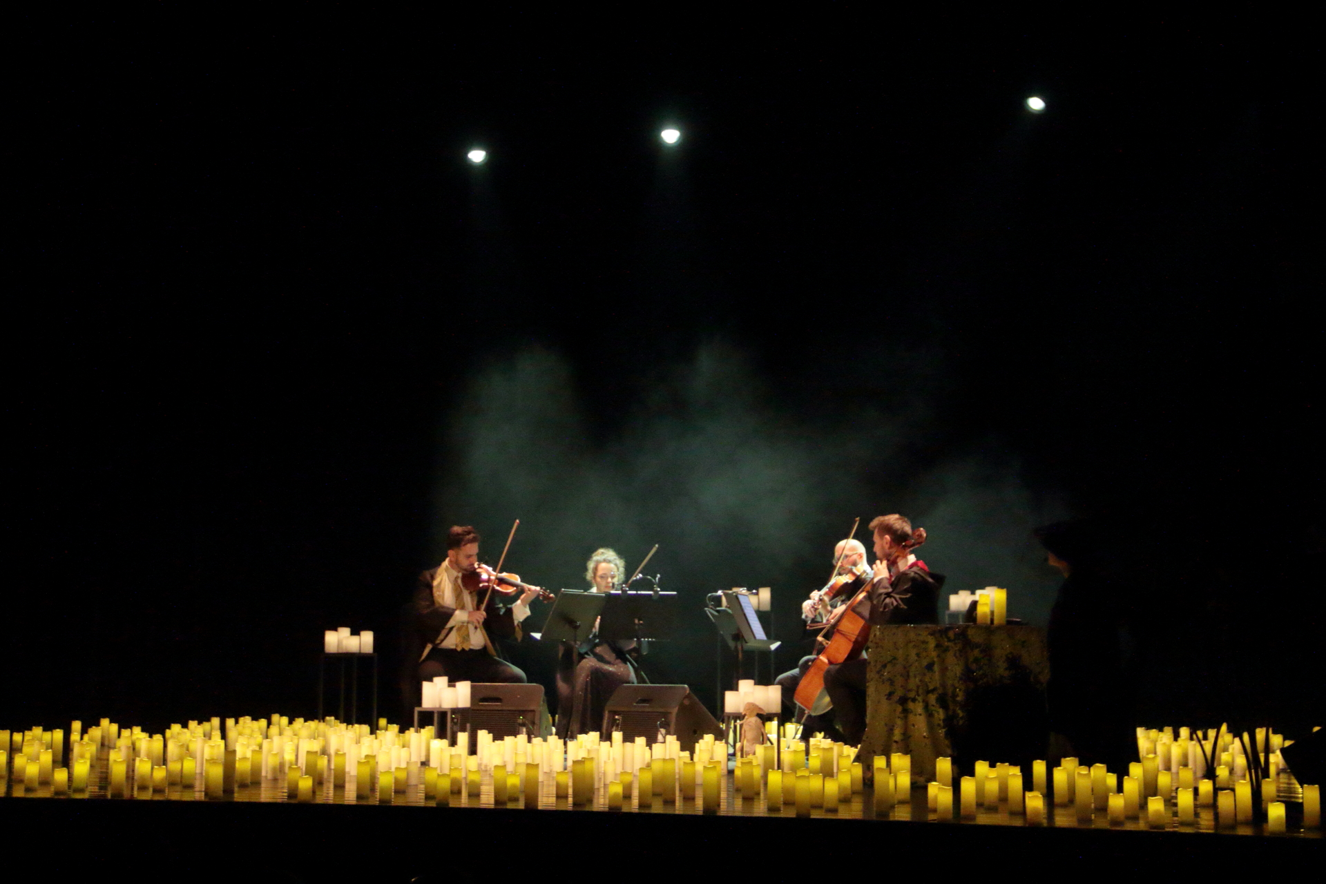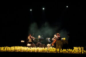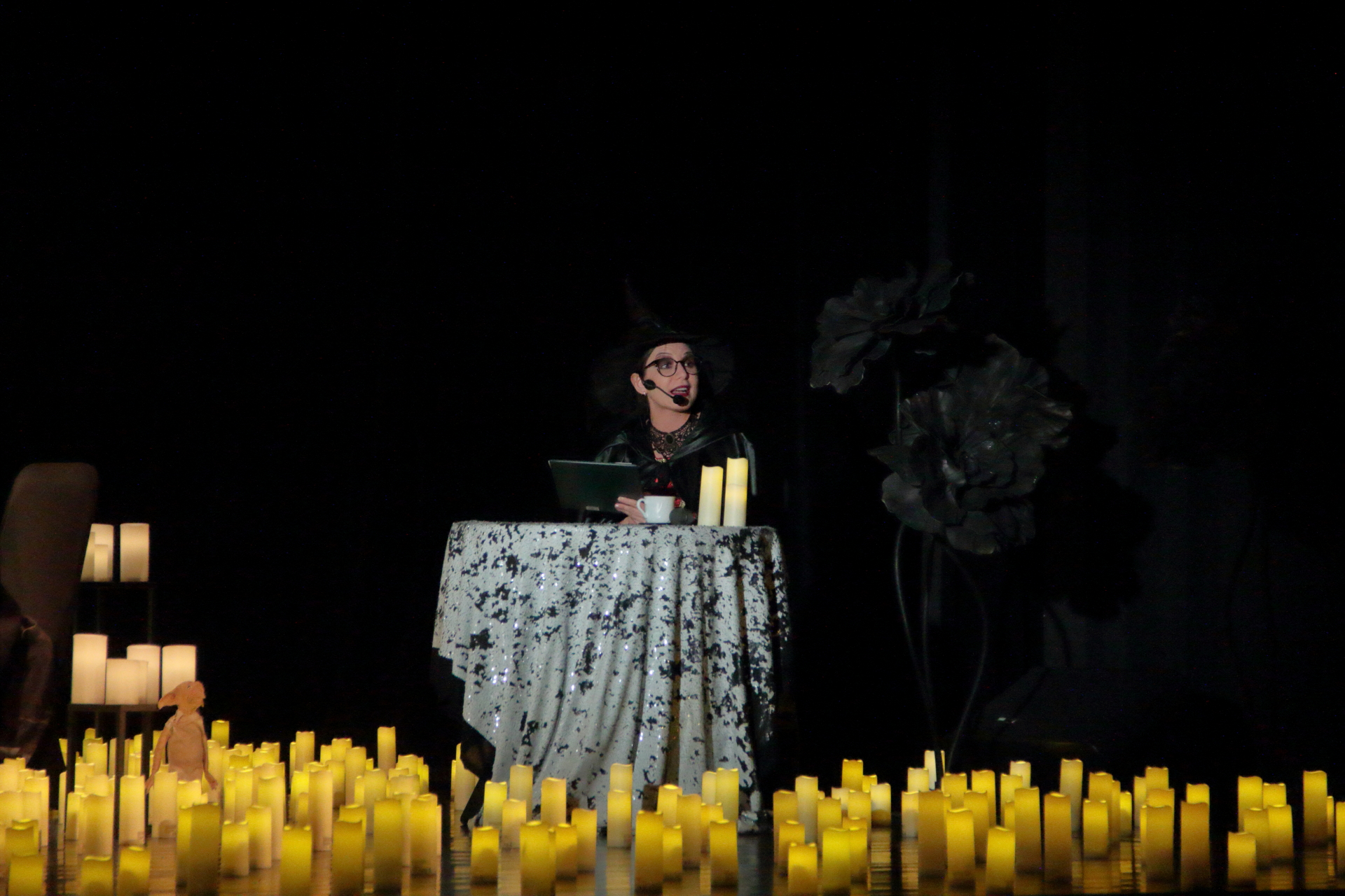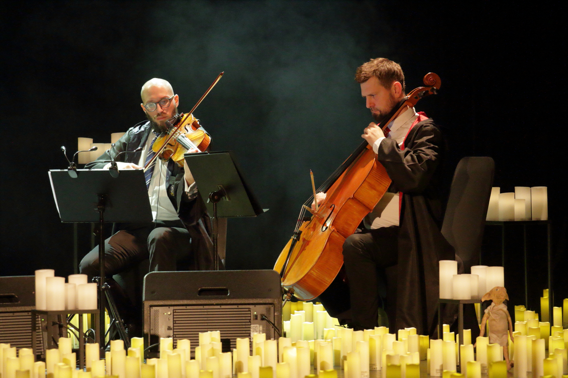 Na scenie wystąpił kwartet smyczkowy, który zachwycił publiczność wykonaniem najbardziej znanych tematów muzycznych: od delikatnych, tajemniczych melodii, po potężne utwory przywołujące wspomnienia wielkich finałów. Każdy dźwięk budził emocje i przywoływał obrazy starych korytarzy, magicznych lekcji oraz przygód, które rozgrzewały wyobraźnię.
