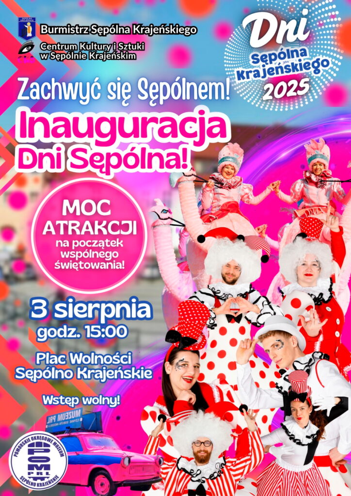 Już niedługo, 3 sierpnia, startują Dni Sępólna Krajeńskiego. Czeka nas tydzień kulturalno-artystycznych atrakcji, których już nie możemy się doczekać. Inauguracja tegorocznego święta miasta zapowiada się niezwykle… kolorowo! Punktualnie o godzinie 15:00 w samym sercu miasta, na Placu Wolności rozpoczniemy świętowanie, którego motywem przewodnim będzie hasło „Zachwyć się Sępólnem!”. Z miłości do naszej małej ojczyzny będziemy symbolicznie „oznaczać” swoje miejsce na Ziemi. Różowy Trabant, który staje się na ten czas mobilną wizytówką naszego miasta, zyska – przy Waszej pomocy – wyjątkową, artystyczną dekorację. Będzie hucznie, barwnie i wesoło! Bo w końcu powód ku temu jest szczególny – wszem i wobec ogłaszamy start Dni Sępólna Krajeńskiego 2025! Bądź z nami i zachwyć się Sępólnem!