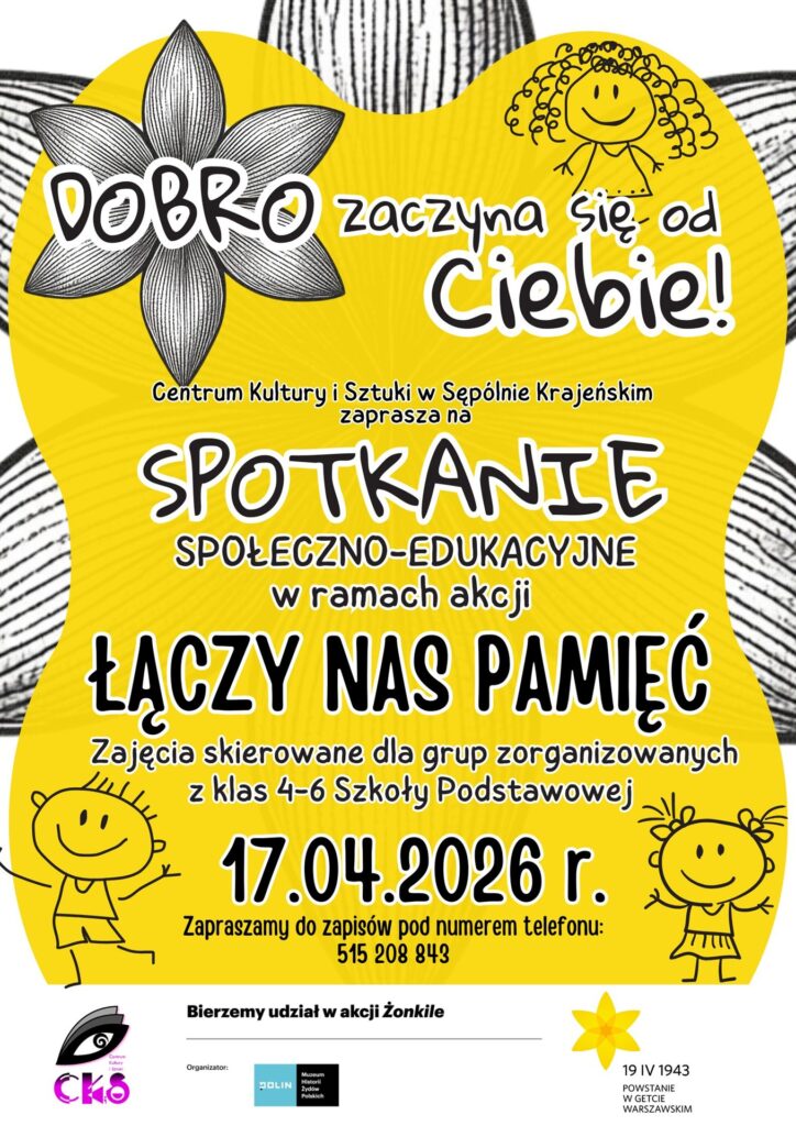 Serdecznie zapraszamy grupy zorganizowane z  klas 4–6 Szkoły Podstawowej na spotkanie społeczno-edukacyjne organizowane w ramach akcji „Łączy nas pamięć”.