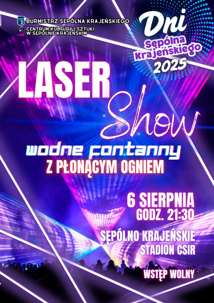 Tego jeszcze nie było! Woda i ogień to żywioły przeciwstawne, a jednak w przygotowanym specjalnie z okazji Dni Sępólna Krajeńskiego widowisku będziecie mogli Państwo zobaczyć fontanny z płonącym ogniem! Elektryzujące show zostanie wzbogacone o nie mniej widowiskowy pokaz laserów. Taniec świateł i żywiołów na długo zapadnie Wam w pamięć. To propozycja dla dużych i małych, dla dorosłych i dla dzieci – każdego, bez względu na wiek jest w stanie urzec tak zjawiskowy multimedialny spektakl. Przyjdź i zobacz na własne oczy!