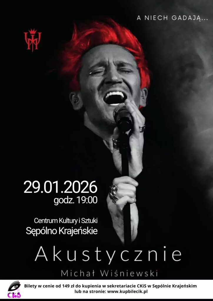 Już 29 stycznia 2026 o godz. 19:00 scena Centrum Kultury i Sztuki w Sępólnie Krajeńskim zapłonie emocjami! Michał Wiśniewski zaprasza na wyjątkowy koncert w akustycznej odsłonie – bliżej, mocniej i bardziej osobiście niż kiedykolwiek.