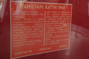 Wystawa w symboliczny i poruszający sposób przybliżyła wydarzenia 1940 roku. Jej narracja została oparta na dziesięciu słowach-kluczach, które prowadziły zwiedzających przez historię, emocje i pamięć, skłaniając do osobistych przemyśleń i zatrzymania się nad losem ofiar.