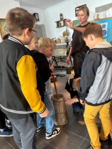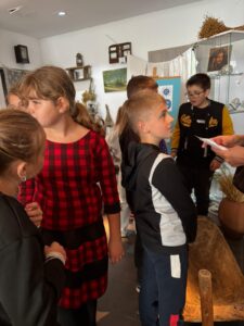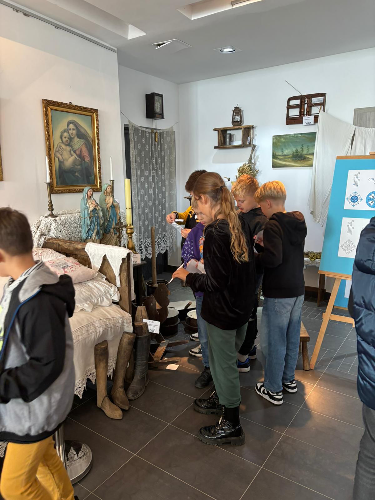 9 października 2025 roku uczniowie klasy IV ze Szkoły Podstawowej w Lutowie odwiedzili Izbę Dziedzictwa Kulturowego. Podczas wizyty poznali, jak wyglądało życie ludzi w dawnych czasach – jak mieszkali, pracowali i spędzali wolny czas.
