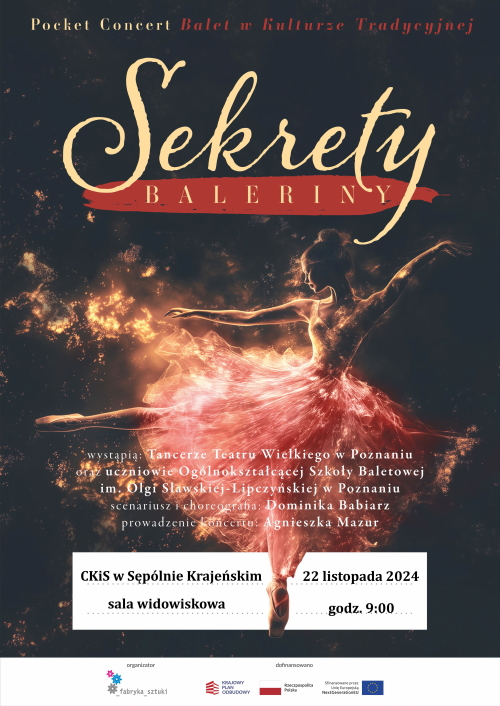 Centrum Kultury i Sztuki w Sępólnie Krajeńskim zaprasza uczniów szkół podstawowych (klasy I-VI) na bezpłatne spotkanie ze sztuką w ramach programu „Balet w Kulturze Tradycyjnej”.