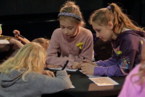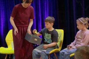 Uczniowie mieli okazję wysłuchać słuchowiska opartego na opowiadaniu Rafała Witka „Czelendż”. Historia Alana, nowego sąsiada, który wprowadza do grupy podwórkowych znajomych internetowe wyzwania, skłoniła dzieci do refleksji nad odwagą bycia sobą oraz znaczeniem reagowania na niebezpieczeństwo, które może spotkać bliskich.